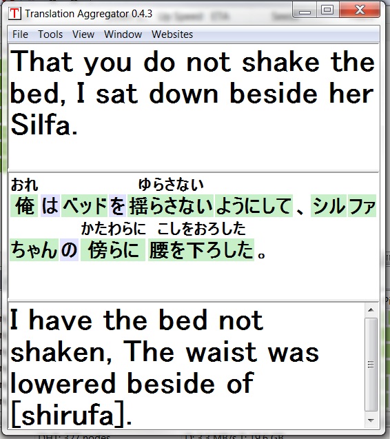 Sokyra Posted September 7, 2012 Posted September 7, 2012 (edited) Be sure to install Jparser and MeCab if you can read hiragana, it will allow you to read "phonetically" the text. When you are able to read all the narration and protagonist sentences, you get to understand them like the voiced heroines... Top is Atlas and bottom is google, you will end up not reading them anymore... By the way it doesn't show on the pic but when you hover the mouse over the green blocks, you get English traduction of the kanji as a bonus. Edited September 7, 2012 by Sokyra Quote