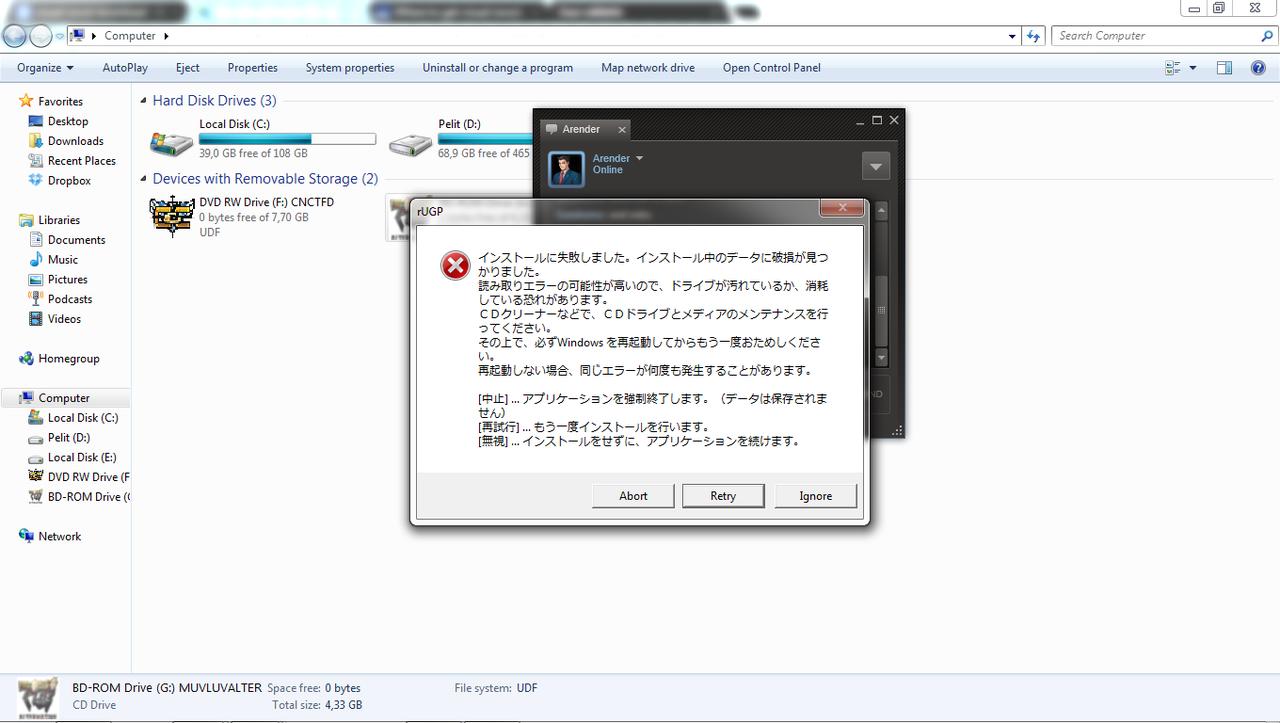 Sandremo Posted October 2, 2012 Posted October 2, 2012 Hey! I have a slight problem when it comes to Muv-luv alterntive. There may have been a post previously about that or currently is but i didn't find it while browsing through tech support but anyway on to the problem itself. I put a picture of the error i'm receiving as an attachement. Now this problem appears AFTER the the odd 2 second installation is done. It pops up the rUGP installer and does what ever it does fine for the first... uh.. patch? But then gives me that error at around 60% during the second one. I dont understand a word about japanese so i have no idea what's causing the problem nor do i have any ideas how to fix it... It's really frustrating since i spent a whole day trying to download the 21 parts only to get this smashed into my face. Any ideas? PS. Oh and hey gents! Too bad the first post i put out has to be in the tech support but greetings from cold northern scandinavia! - Sandremo Quote
