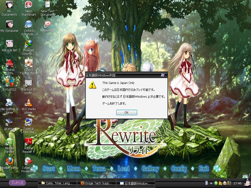 Aver Posted October 11, 2012 Posted October 11, 2012 Anyone know how to fix this? i've tried to make sure my language and regional in Japan but this window still appear Quote