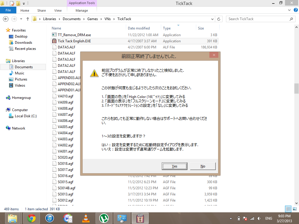 Kinni Posted March 27, 2013 Posted March 27, 2013 uhm...has anybody finished the game? my game crashes after it fades to black at last line of the Protag "My warm and loving family...I'll be there for them" and when i try to open the game again it shows me this [ATTACH=CONFIG]8884[/ATTACH] please help T^T Thank you in advance I did. Got everything. I just ignored the error messages. It's not like they were preventing me from playing. I had no other problems. Quote