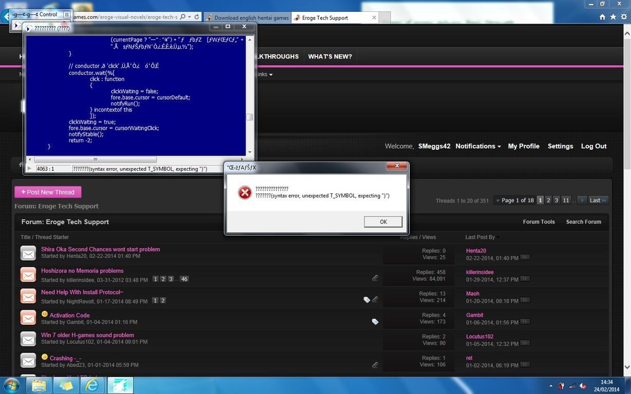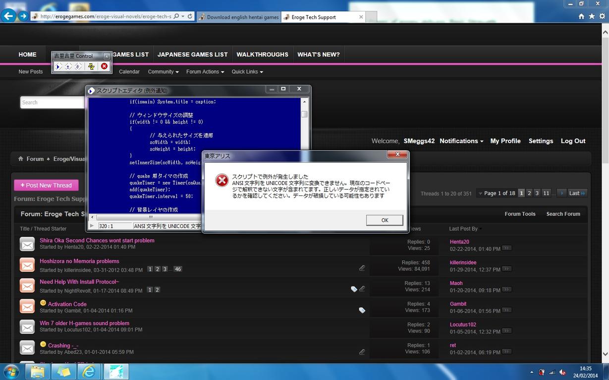 SMeggs42 Posted February 24, 2014 Posted February 24, 2014 Hi all. Downloaded this not long ago and can't seem to get it to work. I've done a basic search of this forum and google and nobody seems to have an answer yet. Upon loading normally it mentions something about an unexpected T_Symbol? In Japanese locale it also shows a blue screen and error message but different this time mentions ANSI and UNICODE. Anybody know what I can do about this? Thanks in advance. Quote