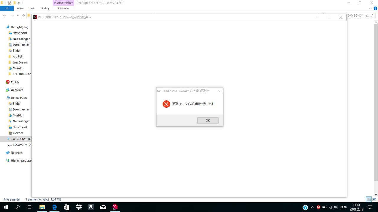 Henta20 Posted August 23, 2017 Author Posted August 23, 2017 --------------------------- Re: BIRTHDAY SONG ~ Death God who sings love ~ --------------------------- Application initialization error --------------------------- OK --------------------------- Here i have done it Quote