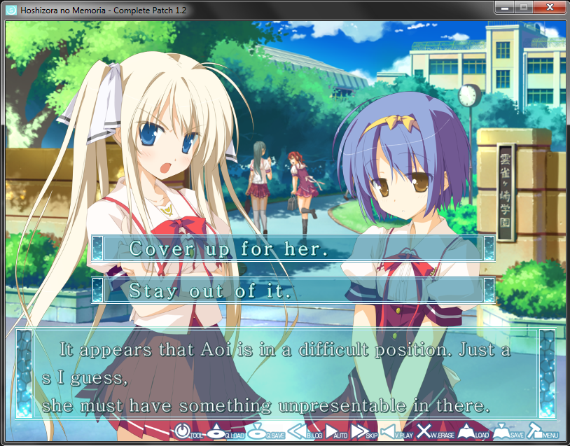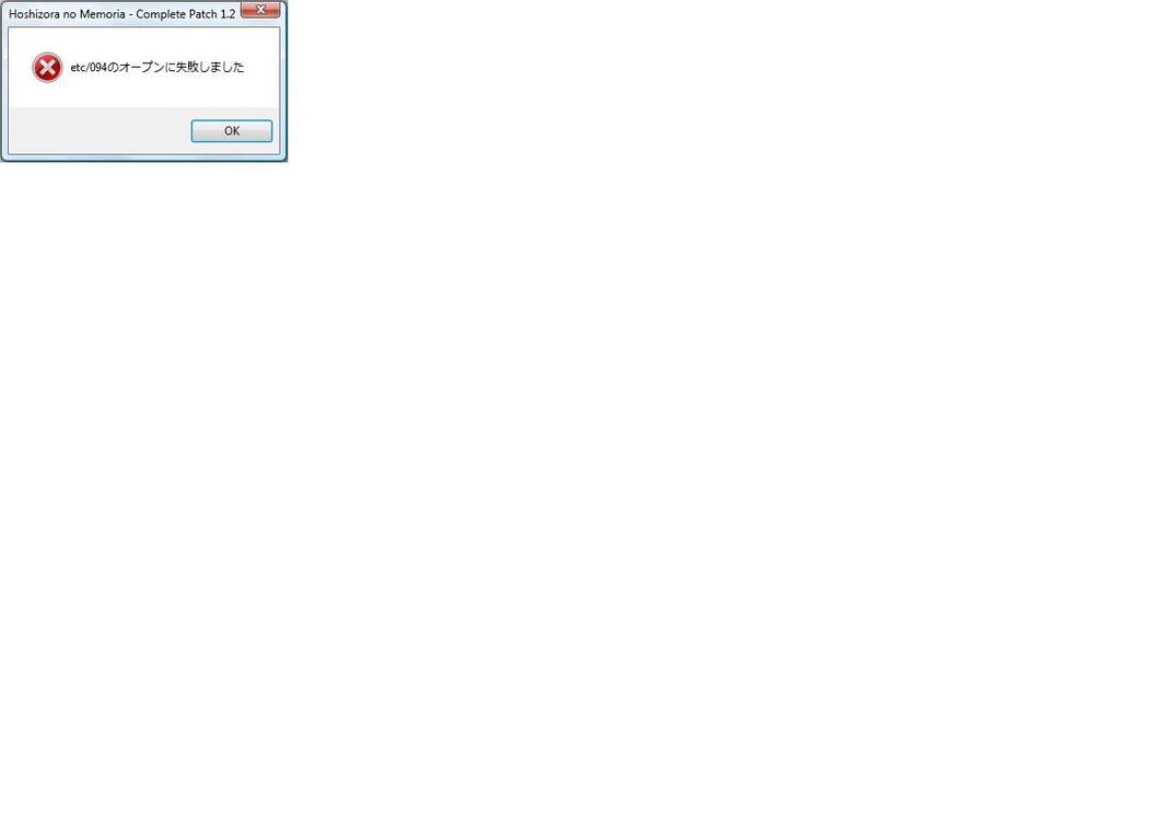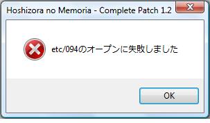 desi Posted March 15, 2013 Posted March 15, 2013 I have done a quick search and cannot find if anyone else is even having this problem and from a quick search of this thread did not see it mentioned. I reach the point in the game when I start speaking with Mare about swimsuits and meeting for the beach and have just dodged an attack by her when the following error message appears "etc/094 followed by Japanese characters" (please see following screen capture): [ATTACH=CONFIG]8815[/ATTACH]. The game screen is white at the time and the game then crashes. Is there a fix for this problem? What is causing it? Just wanted to add I have the locale set properly and it is patched up to version 1.2. Thank you all for your help. You have the bugfix applied, right? I know you get the etc/038 error if you don't have the bugfix applied. Haven't seen the 094 error with hoshizora before. Try applying the bugfix again and running it. Quote