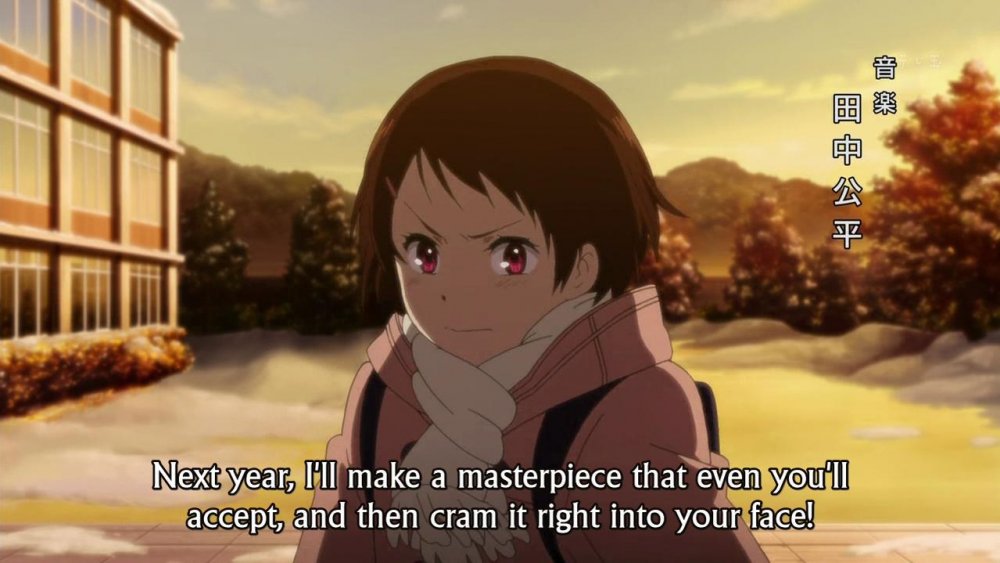 Dan. Posted May 7, 2012 Author Posted May 7, 2012 I'm starting to like the way they animate the scenes where Oreki explains how he figured out the solution. They're all animated differently so it adds some variety to the show. Also, I noticed they changed all the lines concerning Sekitani Jun from 33 years ago to 45 years ago and I was wondering why, but then I realized the book was set 12 years ago (2000) and they changed the setting for the current day parts, but not when the incident happened (SLIGHT SPOILER because the time period is related to the case). The show is starting to get better as they're moving into the main plot. Quote