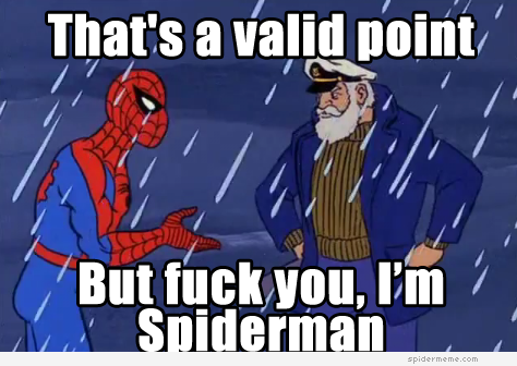 Alien Posted May 28, 2012 Posted May 28, 2012 I will agree with that.Government is a terrible idea from the start their is no real right way to apply it. Tell me more about how all of civilization was a bad idea and we should just go back to living in trees because the nasty government jailed somebody for indulging their pedophilia. http://i.somethingawful.com/forumsystem/emoticons/emot-allears.gif Or maybe you'd just prefer no government? Which would leave us with... no roads/bridges, no electric/water/internet infrastructure, and actual mob rule. But I guess pedophiles wouldn't be in jail, so it's okay. Until they get lynched for wanting to fuck children. Quote