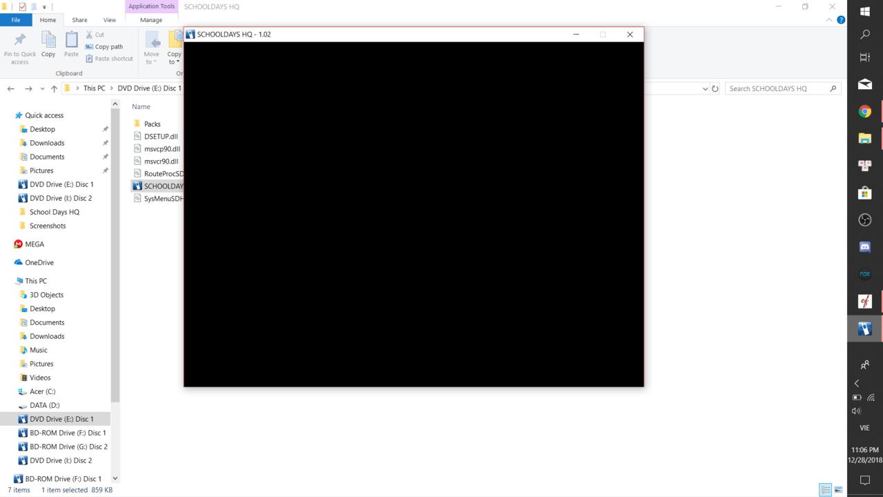 SaitenX Posted October 11, 2018 Posted October 11, 2018 As usual - new game, new problems \o/ I'll update the thread as I find stuff and the members can post the issues they have. Also be sure to post if you find a solution to some unresolved one. If you're reporting a new issue, please write in detail. Don't write stuff like "my game crashes, please help", provide more details and/or a screenshot of the error. Issue #1: Movie02.gpk and Movie03.gpk installation error - Some people reported that their installation gets stuck when installing these files. This is a workaround - you need to mount Disc 1 and 2 (with Daemon Tools) and find a folder called "packs", copy (and overwrite them if needed) what's inside that folder to - C:\Overflow\SchoolDays HQ\packs (that's the default installation path, it will be located somewhere else if you choose to install the game in some other location). After that you need to add some stings to the registry (because the game creates them at the end of the installation, which didn't complete for you), otherwise you will get an error "Script version doesn’t match". Info and instructions how to add those can be found - HERE. Solution updated: Registry fix after manually moving the files added, credit goes to Smileynator and Snowbell. Issue #2: No sound after closing/restarting the game - If you have no sound after closing the game and starting it again, there are 2 things you can do. They are similar, choose which ever is more convenient for you. Solution #1 - go to your game folder (default install folder is "C:\Overflow\SCHOOLDAYS HQ"), find and delete a file called "config.dat". You need to do this every time you start the game or the sound will be gone again. Note that you will need to re-do your in-game settings every time you start the game. Solution #2 - go to your game folder (default install folder is "C:\Overflow\SCHOOLDAYS HQ"), find a file called "config.dat". Right click on it and choose Open, a new window will pop up, choose "Select a program from a list of installed programs" and choose Notepad. It will be open up as a text file, delete all the text there and save it (File -> Save). You also need to set the config file to read-only (Right click on config.dat -> check Read-only). Note that the only thing that varies from Solution #1 is that you won't need to delete the file every time you start the game, but you will need to re-do your in-game settings each time. Update: No longer relevant, the v1.01 patch fixes this issue. Issue #3: Game freezing in full screen mode - Some people have a problem running the game in full screen mode, it freezes frequently and they are forced to restart the game. The only workaround for now is to just play the game in windowed mode and it will run fine. Untested - Someone said that it's because of the .NET Framework 3.5 . You can find it on Disc 1 and install it, but there should be much need to do it on Windows 7 since it has it installed by default (unless you turned it off for some reason. If you did, go to Control Panel -> Programs and Features -> on the left side click "Turn Windows features on and off" and see if Microsoft .NET Framework 3.5.1 is checked). After that, delete the config.dat file inside your game folder, run it again and see if it freezes in full screen again. Update: Reinstalling/turning on .NET Framework 3.5 does not solve the problem. Update #2: This issue may possibly be solved by installing the v1.01 patch (didn't test it yet). Issue #4: Black screen when opening the game - If you get a black screen when you launch the game (it may also not respond and close), you need to update your graphics drivers and it will work fine. Issue #4a: Black screen when opening the game (with sound) - Similar problem as Issue #4, only difference is that the game doesn't crash right away and you hear the sound from the title screen. Solution - you need to mount Disc 2 and start the game with it. It should work fine with that. Issue #5: Script version doesn’t match error when loading a save - The game freezes when trying to load a save. No solution as of yet. Note: This issue seems to occur when you copy the files manually to the game folder (if your installation freezes). Update: This is no longer relevant, solution for it is combined into Issue #1 (following those instructions will prevent it from occuring). Issue #6: Video turns black on some parts of the game - Microsoft is to blame for this one if you've installed the latest Windows Updates. More info and solution HERE. JAST released a v1.01 patch for School Days: it fixes a number of issues, more info about it here - School Days HQ Version 1.01 Patch Update: JAST released a v1.02 patch for School Days: it fixes a bug that was causing widescreen mode to use the wrong resolution. Get it here - SCHOOL DAYS HQ Official Website installation issue solution especially the 1049 issue which is most common is to click on the loading bar. Tested on windows 10 64bit and windows 7 pro 64 bit. Quote