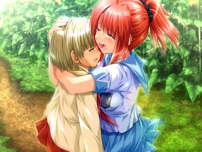 Cross Posted August 10, 2012 Posted August 10, 2012 Sexy Sadness By Cross Let your tears come. Let them water your soul. Eileen Mayhew I’m currently playing Sharin no Kuni. In the first climax of the 2nd chapter Sachi gets a present that reminds her of her painful past. She gets angry and insults her cute Loli-roommate. Shortly after, Sachi deeply regrets her actions and starts to cry. After dealing with this heavy Moe-impact I remembered other VNs with similar scenes. And I realized that I discovered one of the most successful tropes of VNs… Crying girls are cute. Tears are like an invitation for hugs and kisses. With the right buildup, matching music and a passionate Seiyuu, those scenes usually are the emotional climax of a route. Weak girls unleash our inner white knight, challenging us to comfort and save them from their sadness (H-Scene afterwards optional, but welcomed). It seems cheap and clichéd, but just imagine a cute girl with tears in her eyes. She will never be more beautiful than in this moment of weakness and fragility. You could argue that this emotional superiority of the male part is like a sexist wish for passive, submissive girls and maybe that’s not entirely wrong, but at the same time protecting girls is like a reflex carved into our subconsciousness, passed down to us for hundreds of generations. Tsunderes, Lolis, Imoutos, clumsiness, naivety… Moe has many forms, but the most appealing, the one with the biggest emotional impact is undoubtedly a weeping girl being comforted by a loving protagonist. And there’s nothing wrong with that. Cross’ Top Three of Crying Scenes From the 32 Visual Novels I played until now many contained scenes with sad and crying girls, but some of them clearly stood out. From this point onwards: SPOILERS GALORE Honorable Mention: Al Azif (Deus Machina Demonbane) During her H-Scene, after she climaxes, Al starts to pee uncontrollably. Being so embarrassed she loses her composure and begins to cry. This is incredibly cute and endearing! Al is a very strong female character, battling Mechas and ancient gods, but still manages to surprise us with such a remarkable weakness. This is a great way to connect cool and strong characters with readers. (If Al would be a real girl, I wouldn’t have a problem with her wetting my bed – it’s worth it!). 3. Ayu (Kanon) Ayu is the main girl of Key’s “Kanon”. She often meets the protagonist in town, but goes to a different “school”. Near the end of her route it becomes clear that this school doesn’t exist and the girl he met every day is actually an astral projection of the real Ayu being in coma in a hospital. When the two realize that, she starts to fade and all the emotional pressure breaks her barriers. Result: One of the most beautiful crying scenes. Uguu~… 2. Hanako (Katawa Shoujo) Hanako is the most popular of the girls in “Katawa Shoujo” (believe me – the rest of the cast is just a bonus). Her route deals with the mistake of Hisao to treat Hanako like a victim, instead of a lover. She doesn’t want pity. Hanako wants him to love her on an equal basis, not as a savior rescuing the helpless maid. Unfortunately Hanako is extremely timid and is too afraid to actually voice her concerns. Later they sleep together, both misunderstanding each other and neither being emotionally prepared. This results in a dangerous turning point in their relationship. The great showdown is in the park, where they honestly share their feeling and thoughts for the first time. This whole mess is a bit too much for Hanako and she breaks down crying. Hisao comforts her, resulting in the good end. This scene is awesome in the truest sense, despite being unvoiced! Without a Seiyuu we can only concentrate on text, music and the CG. However, the team managed to create a heartwarming emotional climax to a fascinating route. Just look at the picture and let the Moe in your heart… 1. Sekai (School Days) School Days is known for it’s complex animation and the over the top violent endings. The scene that got me instead is rather short and not really important compared to the rest, but for me it was very deep and touching. I’m talking about the ”Christmas Eve” ending. Before that, Makoto is given the choice between the two girls. Kotonaha waits for him in a hotel, while Sekai awaits him at the train station. If you choose Kotonaha you’ll get some Ero, but before that is a short scene of Sekai standing at the cold train station, looking at the clock. She mutters “goodbye” and then we see her crying desperately. Try to put yourself in her position. You wait for the person you love, but after some hours you realize that he chose another girl. While the hours pass and the hope fades, Sekai understands that her love for Makoto is not requited. While he sleeps with Kotonaha, Sekai is completely alone with her broken heart. A lonely, rejected girl weeping in despair on a dark and cold Christmas Eve. This is tragic and beautiful at the same time. This powerful image managed to deeply impress me, despite being so short and not even voiced (only background music). For me, this intimate and sad view on Sekai was the best moment of School Days. ----------------------------------- That’s it, folks. I’m looking forward to all the crying girls in VNs I will surely encounter (and comfort) in the future. If you have a good recommendation, feel free to post it. Best wishes and manly tears from your Cross Quote
