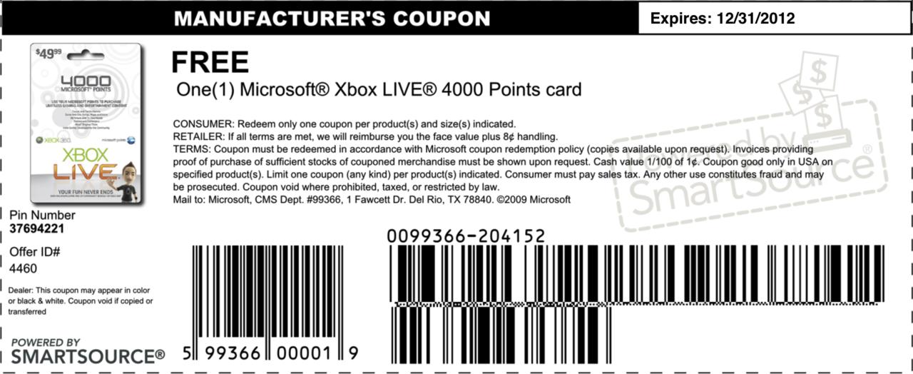 Dan. Posted August 14, 2012 Author Posted August 14, 2012 what's this for? does this work on all microsoft games ? just look at the picture. you use the coupon to buy those cards at the store that give you xbox live subscriptions or ms points. Quote