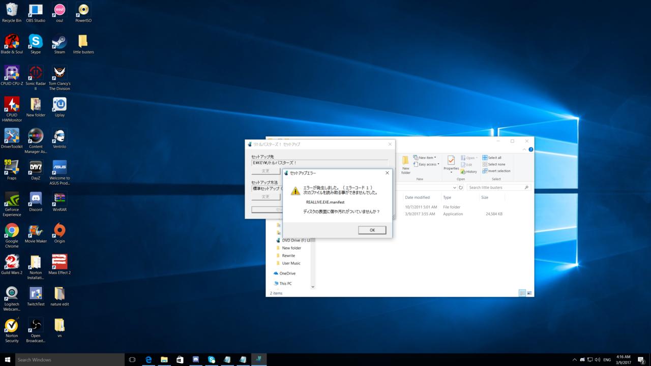 3. Yes I was able to find a work around . After hours of digging through my files , I realize that the reallive.exe was not located inside of my crack folder. Turns out that my antivirus consider it a threat. Had to restore the crack file out of quarantine (being that I already deleted my rar files for little busters , and believe you me I did not feel like downloading all those files again) and insert it into my little busters folder , ultimately replace the reallive.exe the previous existed in the folder itself. After patching it up with the English patch everything seems to be working ok at this point.