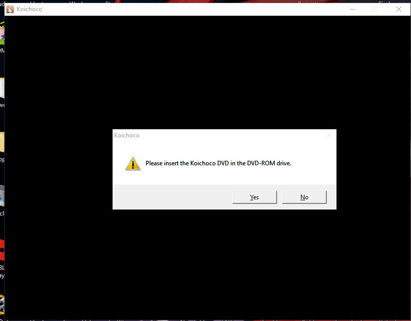 6. Hey Guys! ^^ Im new to the community. Kinda Weird how my first post is actually a post about an issue XD. BUT ANYWAY Down to business, I recently downloaded a Koichoco File from Erogegames. As soon as I tried to play i was hit with a bunch of issues. Like At first Start.exe wasnt working and so was the actual application, but i fixed that issue By changing my Region and Language settings to Japanese settings. But back to the issue at hand, The problem that i am currently faced with at the moment, is I keep getting asked to insert the Koichoco Dvd into the dvd drive. Ive Been looking for Solutions for the least few days now actually, Such as using a locale Emulator running as admin etc. But so far nothing has worked. Please if anyone has the time to assist me with this annoying problem, id really appreciate it. Thank you!