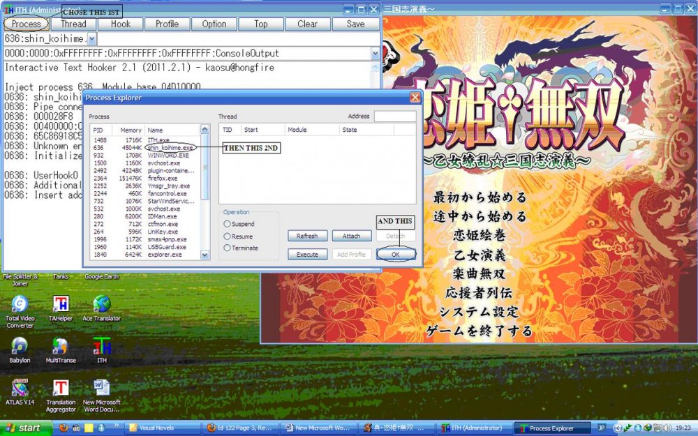 2. Run the game and ITH.exe .Follow the 2nd picture.