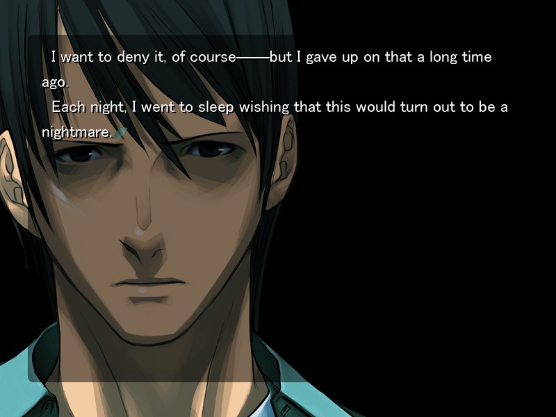 Saya no Uta. Holy moley... Spoilers are all in the spoiler box down below, because no one wants spoilers. Long text because Saya no Uta was so damn different. Magnificent and... Wrong - in all the right ways. I think that's a very fair thing to say about this rather short VN. This is one of the most unique *good* experiences I've ever had. It doesn't feel right though to compare it to titles such as Muv-Luv Alternative and Sharin no Kuni, because this VN is just too different from them and also much shorter. It's in a different league altogether. To start of with, I just want to say that each reading session I had with Saya no Uta was in the complete dark, at night, alone, with headphones on and pretty high volume. Also fullscreen of course. Well... This made a huge difference. Oh yes it did. It felt like being in a different world altogether. I was completely soaked up by the story and everything else the VN presented. If you have not read Saya before, then I highly recommend reading it with this setup. Believe me, it makes a difference, altough the difference will be bigger or smaller depending on the person reading. So! What exactly was so magnificent about this VN then? Alot of things. Visuals/Art - The visuals in this VN are... uh... relentless, disturbing... and correct. Mm, I think that's the right way to put it. Now, I can't talk too much about it without spoiling things that just shouldn't be spoiled. But I can say atleast that what shows up on the screen affects you the way it's supposed to affect you. It disturbed, shocked and sometimes frightened me, which is exactly what it's supposed to do. More than anything, it had almost a claustrophobic effect on me, although that's not only because of the visuals. Oh and the big transparent grey box is back! The one found in "NVL's" apparently. Well I think it fits perfectly with a VN like this. Sound/VA/Music - Oppressive, creepy and memorable, that's the music in a nutshell. It's almost perfect I gotta say. I often felt cornered by it - oppressed - as it worked hand in hand with the visuals and all the descriptions the VN presents. It toyed with my mind. There were some hauntingly beautiful songs aswell though that gave way for some peace of mind every now and then. The voice acting was alright. They did a job showing some heavy emotions every now and then. Also the screaming, let's not forget about that. But no individual voice were particularly memorable in this. Characters - Now we're getting somewhere! Insanity, that's one word to describe this part of the VN. These characters? They can be depressingly evil, purely insane, charmingly adorable and some other things. Sounds strange? Good. I've never read anything like this before and the characters are a big reason for that. Saya (the character) deserves special mentioning. She is a radiant beauty surrounded by grotesqueness, and that fact alone makes her so... Unique. Yes, unique. I doubt I'll ever see a character like this ever again. My mind has a hard time accepting her very existence. She is really cute - but that's the problem right there. She is one of the main reasons why this whole VN is unique aswell as disturbing. However, that said... There is one particular individual in Saya no Uta that takes the cake for being one of the most disturbing characters I've ever seen in a VN so far. If you've read this VN before, then you know exactly who I'm talking about. No, I won't say who it is, not here anyway. Plot/Story - The main dish, as usual. It captivated me, but not in the way that Fate/stay night did for example, oh no. This is not some exciting fantasy story. No, this story cages you and shows you dark things that you probably thought you'd never see in a VN. It reminds me alittle bit of Lovecraftian horror. It's a realistic story in a lot of ways, but it also has that unusual something that will get into your head. Yes, it was addictive. Very much so. I wanted to keep reading more on each session. Then again, taking a break was also necessary for me atleast. Because this story is so evil, suffocating and Wrong (there's that word again). It's wrong, it feels wrong, but it's perfect that way. It's what makes it such a great read. And the endings? There are three endings altogether, with one of them being the "true" ending. My mouth was open for the most part of that true ending. It is absolutely unbelievable... yet somehow, still acceptable. As a result, at the very end of it all, I left the VN with a weird smile on my face. So that's that. Is this yet ANOTHER must-read VN? Why yes it is! Saya no Uta is so goddamn good at what it does. It shows the evil insanity of the human mind, but also the love it can hold. It's a disturbing combination. It ends up being an experience that just doesn't compare to anything else. Wow, what a great friggin' VN this is. -