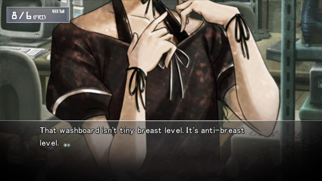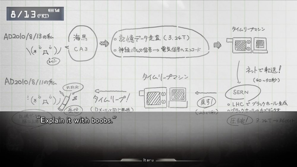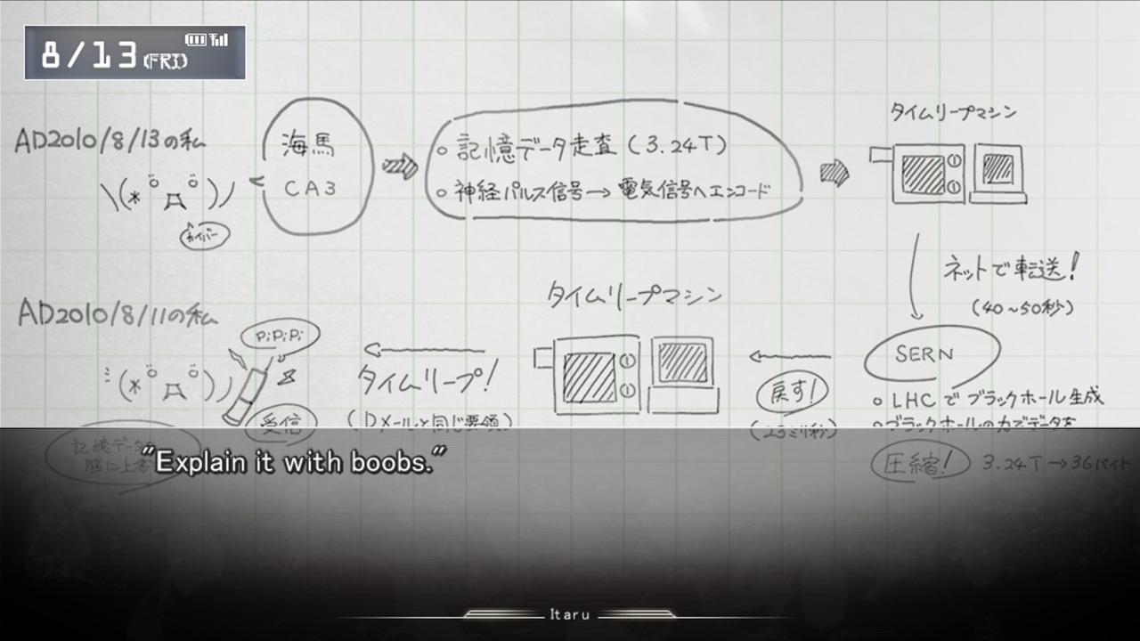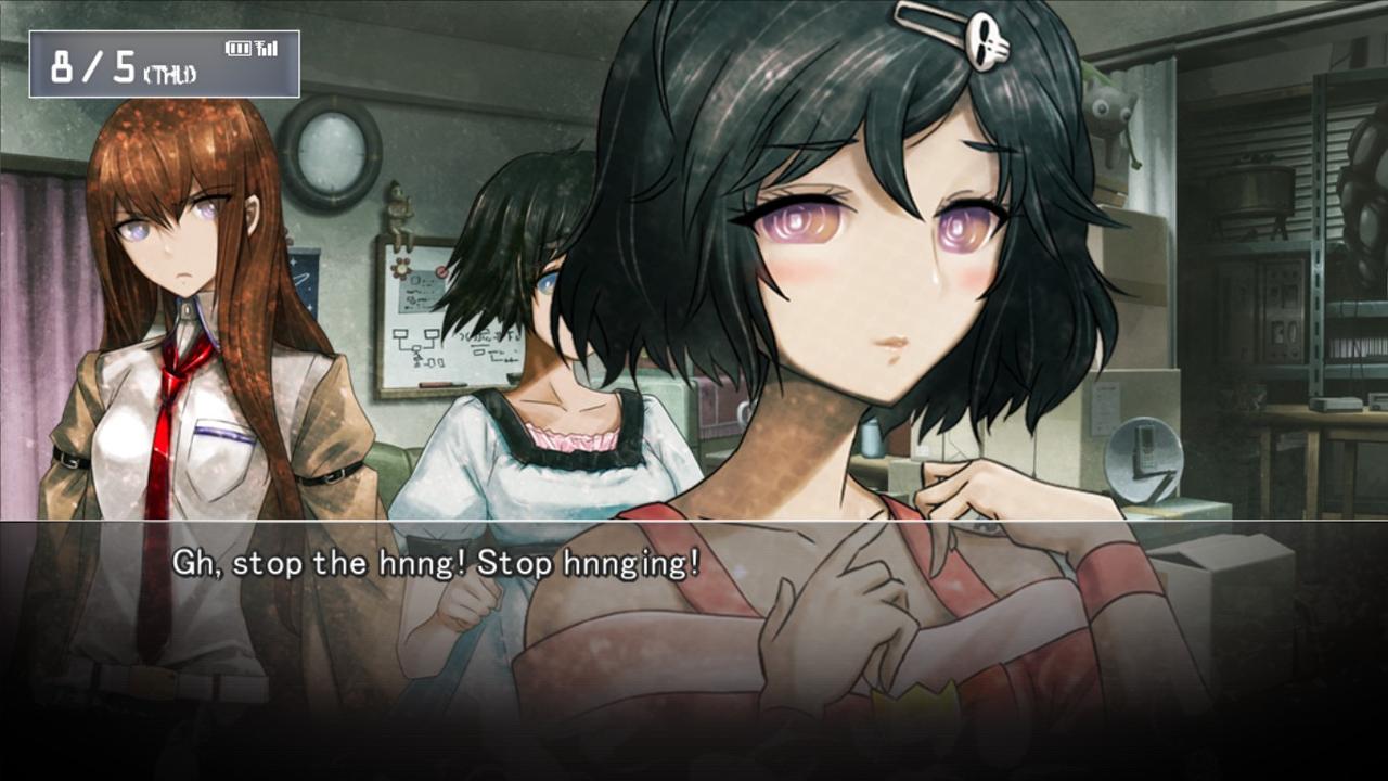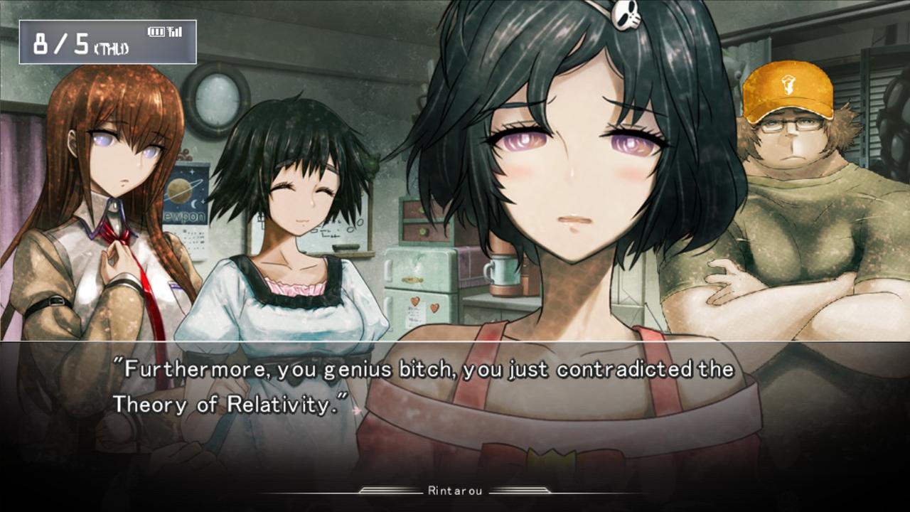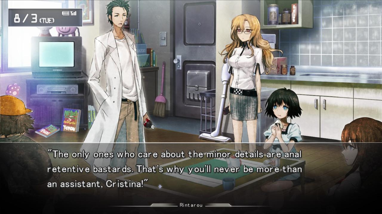 Can't stop playing, Steins;Gate is too awesome: Physics (And boobs). Like i said before, anything those two say it's way funnier in-game. Daru's face = Just took this one because ":3" Mayuri has her priorities in order (Also, Cristina gets mad again).