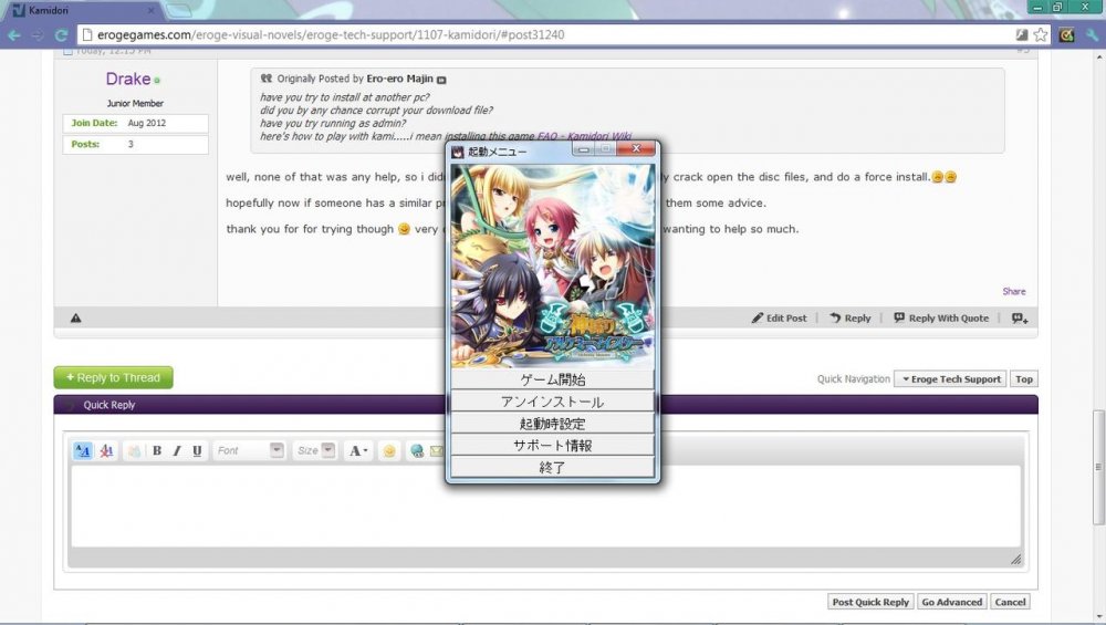 What is the last eroge you finished, and what do you think about it?Drake replied to Maxar's topic in Eroge General Talk Record of Agarest War 2. Before that, i finished Kamidori, which was a really fun game! Then before that i finished Hyperdimension neptunia MK2 (Yea, it's an Erogenous game too! gotta adore the love scenes!) http://static.tvtropes.org/pmwiki/pub/images/Neptunia_mk2_Cover_7283.jpg