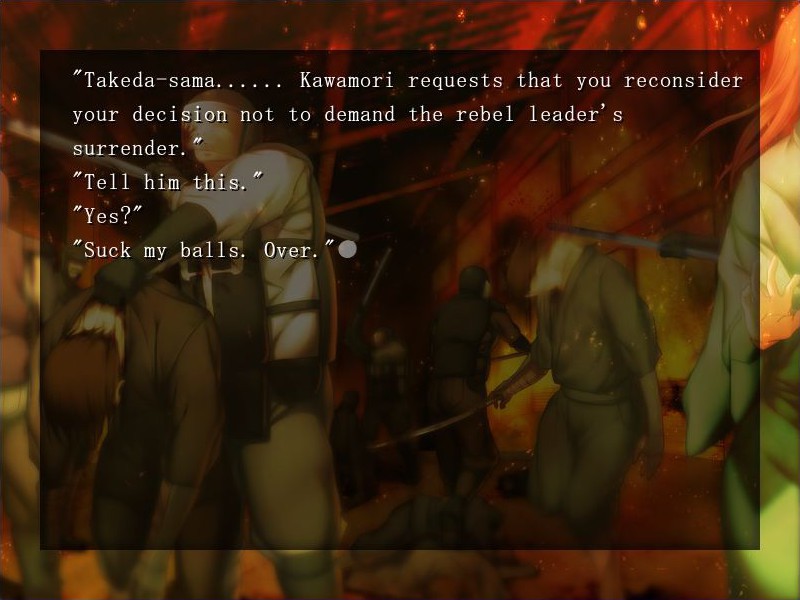 Characters- The cast in Umineko is huge and I mean HUGE. You meet new character each time and learn more things about previous characters each episode as you continue learning about their past as well as their dilemma's, future, and present. The cast increases as you go through each episode as you meet new characters, I cannot describe how many characters their are in Umineko. When you are finished reading Episode 8 you will look back on all the characters throughout the game and it is truly a magnificent thing being able to remember everyone and the trials they failed/succeeded to overcome during your probably 150+ hours of reading. Many of the character are memorable and you will even see sprites of them in other games. *cough cough Higanbana cough cough*. As for Battler he goes through everything you can thing of to find the truth to the mystery. As for the other character you will learn more about almost everyone as you continue reading so their is way too much for me to add here, read it and see for yourself.