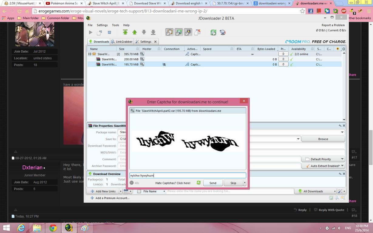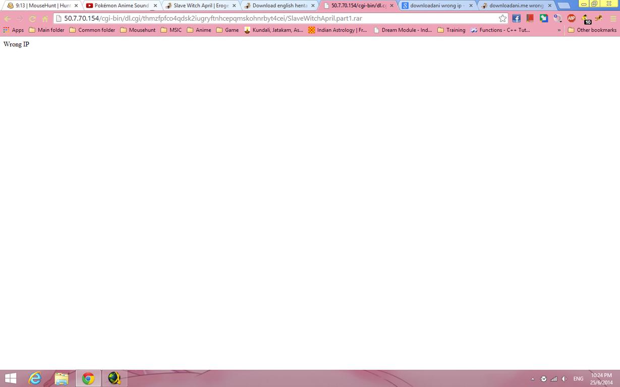 I am facing the same problem I never had this problem before until the download website change to the monkey thing. I have tried downloading only file at one time.It doesn't. I will try rebooting router and rebooting computer later.Hopefully it will solve it. Btw i am trying Jdownloader on http://downloadani.me/4veirplh5ax3/SlaveWitchApril.part1.rar ,but the captcha is very very hard. :/ anyone else having same problem? =.='' i keep getting wrong