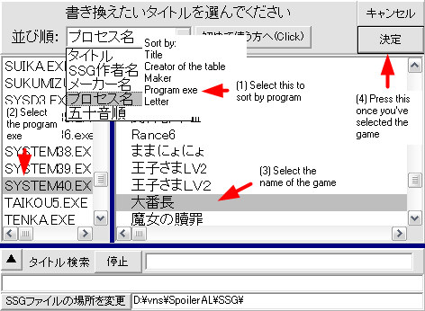 If im right, Cheat Engine is that thing where u first write value of something and then try to find it right? Advantage of SpoilerAL is that u dont really have to search for anything(if you know japanese). I remember i tried to hack A.D. Wars with the method i mentioned and it was for me much harder than using that SpoilerAL -